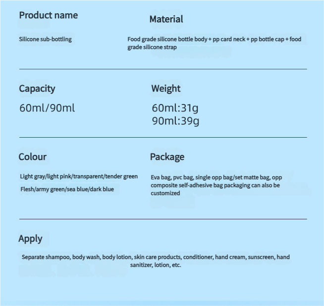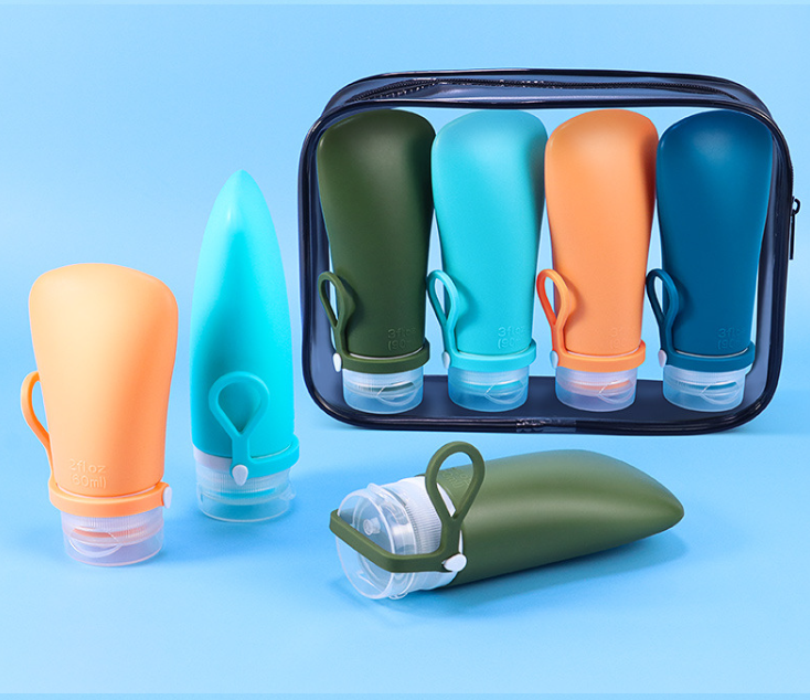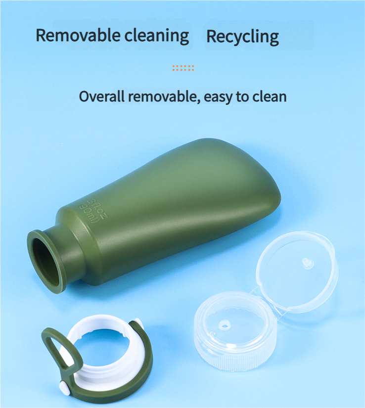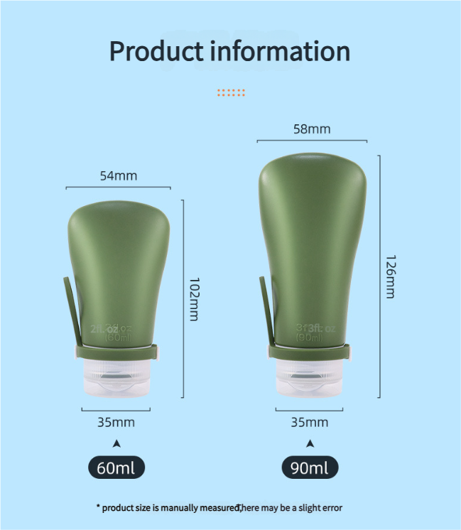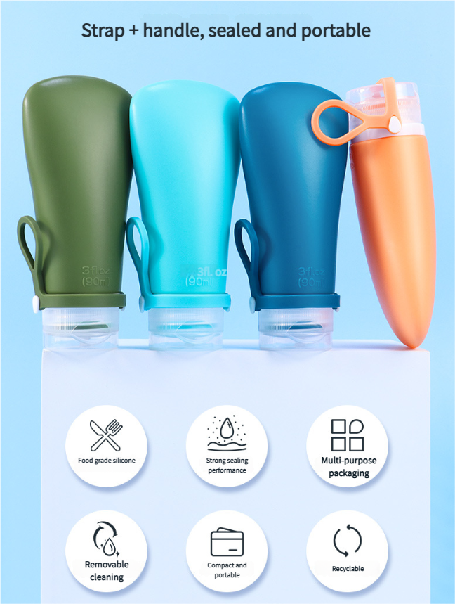 Silicone bottle with screw holes for easy dispensing, upgraded with leak-proof feature, can be hung and is portable for travel, small sample bottle for testing.
